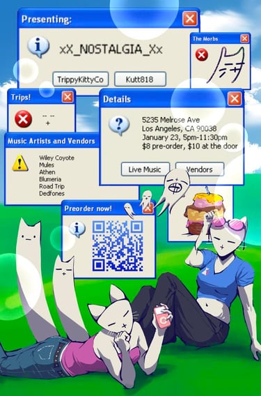 Meet our performers for the evening, LA locals: Dedfones, Road Trip, Blumeria, Athen, Mules, & Wileycoyote. Our theme of this event is Nostalgia <3 We are talking old internet, classic cartoons, silly bands, etc., Show up & show out with us on Friday, January 23rd XD